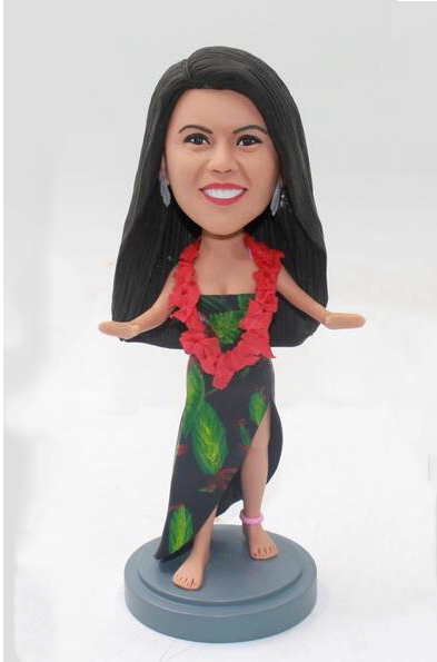 Custom bobblehead dancing hawaii girl with leis