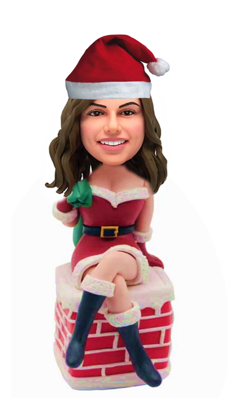 Home    Most Popular Bobbleheads    Custom gifts idea    Custom Christmas bobbleheads sitting on the chimney