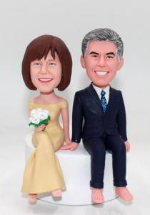 We offer Custom Cake topper for a few of years and we know more about bobblehead cake toppers than anyone. Over 150 styles are offered in this category. Most are best-selling and popular with customers. We have a lot of standard wedding styles with bride wearing dress and groom in suit standing or sitting by each other, holding hands or groom carrying bride.Though more couples prefer to customize a stylish cake topper, a few of couples insist on buying standard bobbleheads to put on the cake. There are also cake toppers with different themes, including indian or canadan wedding cake topper,sports style, japanes and chinese style and musician styles. You can choose the one best suits your clothes you wear on your wedding day and add the accessories like flower, pets, ties,personalized bases and any other options. You can also select the one shows the right occupation of you or the hobby of you and that must be a meaningful option. Bobblehead cake topper, the bobble head feature is so good for a top of cake as the heads is usually bigger on the bodies than normal and that seems both stylish, fun and fashionable. Cake topper is really one of the most important part of the wedding. Everyone would like their bobblehead topper to become the hit of the day. And we will help you realize your wish. What you need to do is trust us and specify your requirement and we will do the rest.