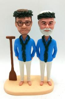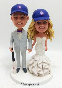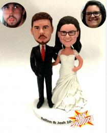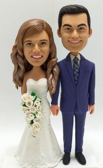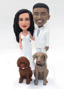 We offer Custom Cake topper for a few of years and we know more about bobblehead custom cake toppers than anyone. Over 150 styles are offered in this category. Most are best-selling and popular with customers. We have a lot of standard wedding cake toppers styles with bride wearing dress and groom in suit standing or sitting by each other, holding hands or groom carrying bride.Though more couples prefer to customize a stylish cake topper, a few of couples insist on buying standard bobbleheads to put on the cake. You can choose the one best suits your clothes you wear on your wedding day and add the accessories like flower, pets, ties,personalized bases and any other options. You can also select the one shows the right occupation of you or the hobby of you and that must be a meaningful option. Cake topper is really one of the most important part of the wedding. Everyone would like their bobblehead topper to become the hit of the day. And we will help you realize your wish. What you need to do is trust us and specify your requirement and we will do the rest.