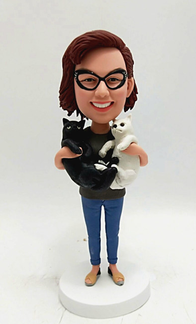 Home    Custom Bobbleheads    Casual Bobbleheads    Custom bobbleheads-holding two cats