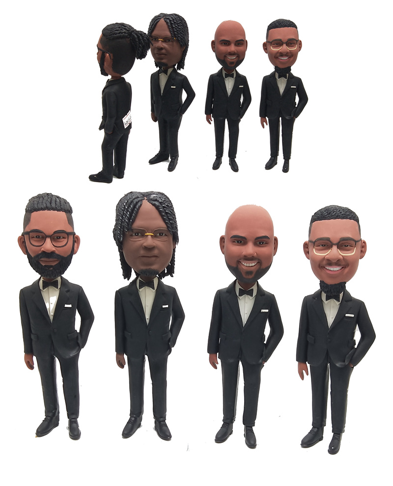 Custom groomsmen bobbleheads African American groomsman